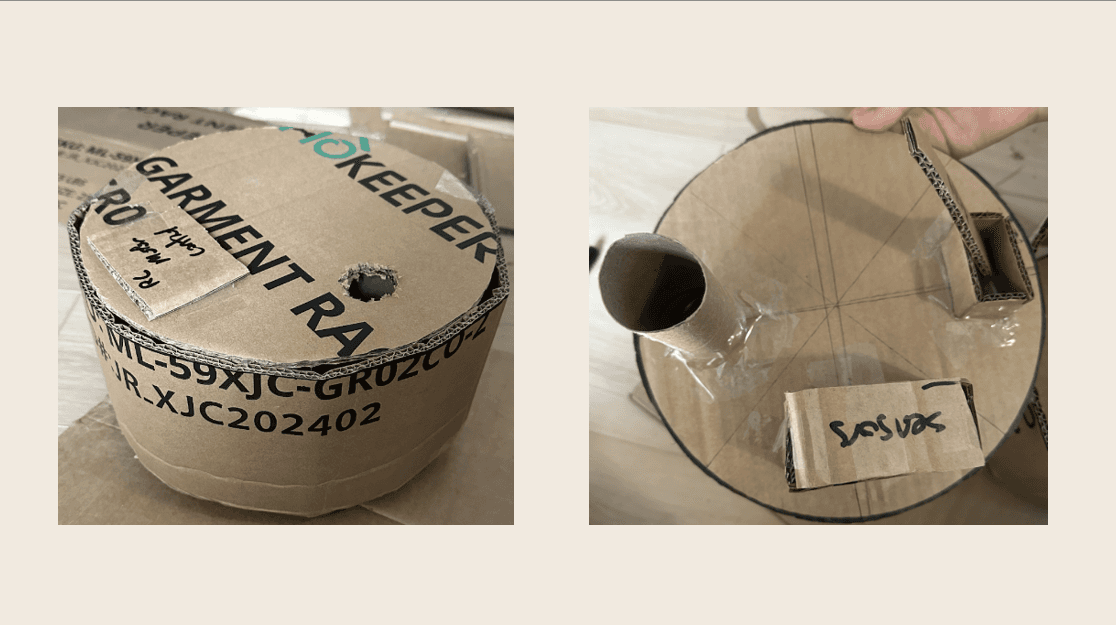 Prototype made with cardboard to determine sizing & specific features