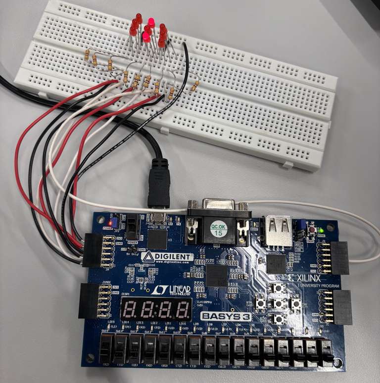 This project was developed as part of the RPI-HVCC Semiconductor Scholars Internship. There is also a tutorial on the Mercer XLab Education Modeules website for Verilog and the Basys 3 board that was written following the completion of this project.